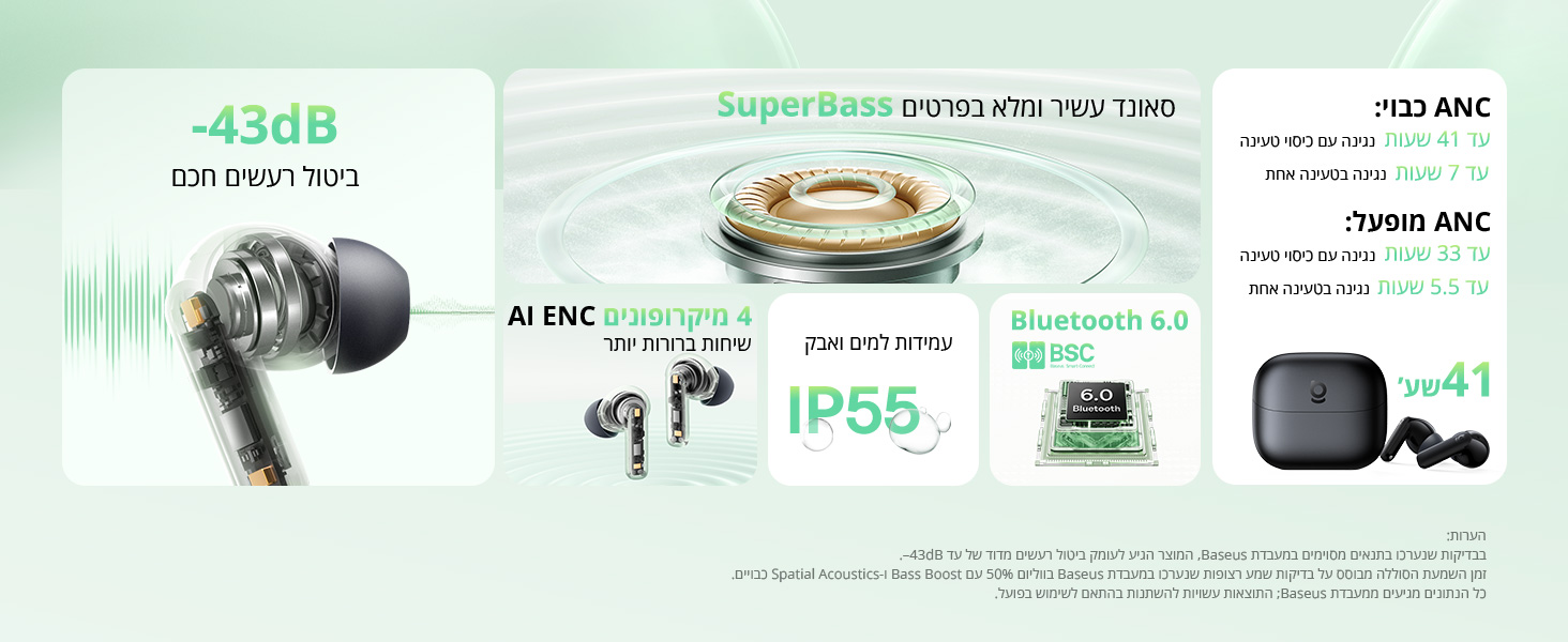 השתיקו את רעשי הרקע ותצללו אל תוך המוזיקה שלכם! האוזניות האלחוטיות מדגם Bass BP1 NC של חברת בזוס (Baseus) לוקחות את חוויית ההאזנה היומיומית שלכם צעד אחד קדימה. השילוב של האותיות "NC" (Noise Cancelling) בשמן מעיד על היתרון הגדול ביותר שלהן: טכנולוגיית ביטול רעשים אקטיבי המסננת רחשי רקע כמו מנועי אוטובוס, המולת רחוב או רעשי מזגן במשרד, ומאפשרת לכם להתרכז נטו בסאונד. וכמו שסדרת ה-Bass מבטיחה, תזכו לפרופיל שמע עמוק, בועט ועשיר במיוחד שמרים כל שיר וכל אימון.